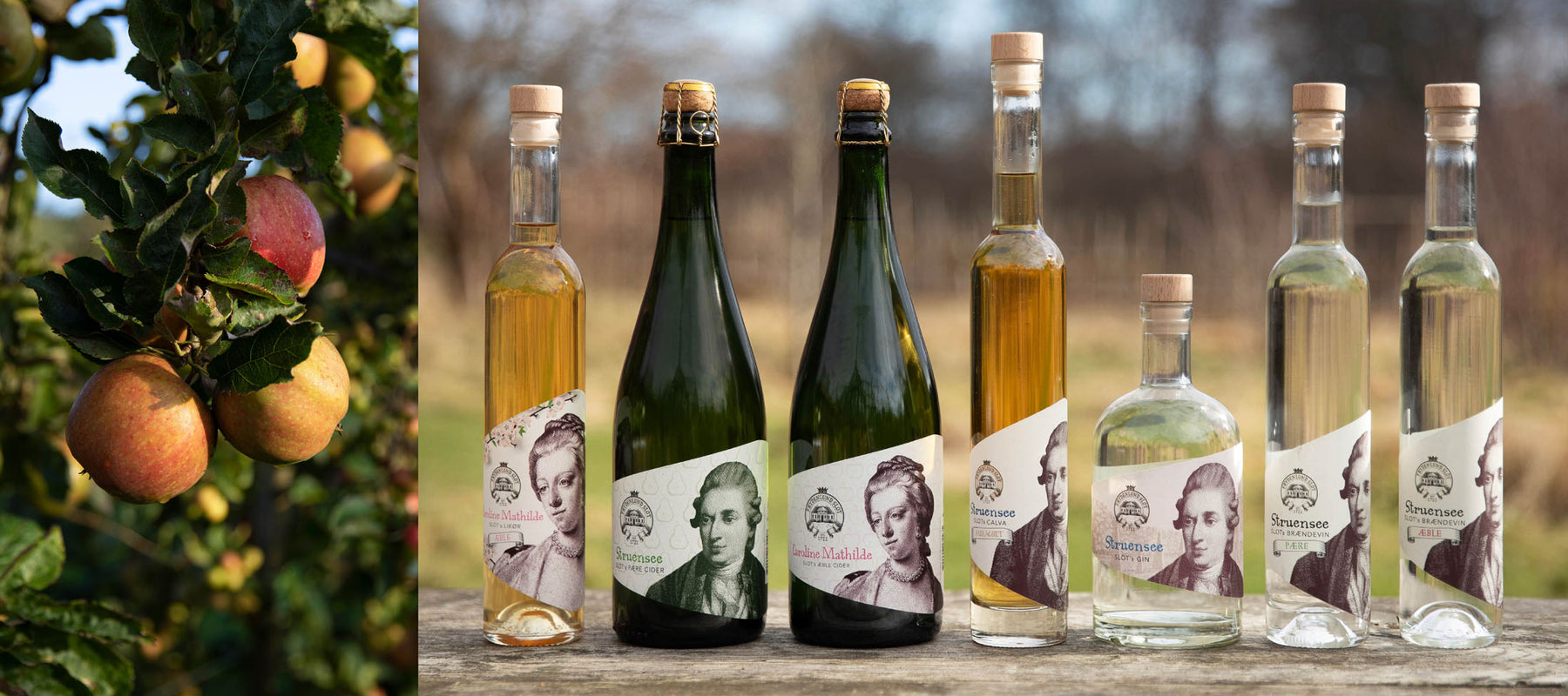 På gårdspladsen byder vi på smagsprøver af vores lækkerier med alkohol. Det er en særlig oplevelse at besøge den historiske frugtplantage og se, hvad naturen også kan med farver og dufte fra æble- og pæretræerne.